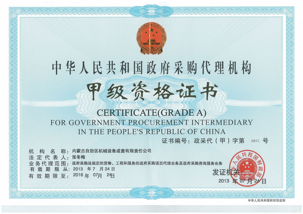 內蒙古招標采購行業(yè)信用AAA級單位資格證書